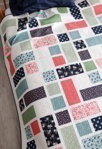A tricky looking quilt that's not tricky to piece! The Grandstand pattern has 5 different blocks and an endless number of ways to arrange them, so each quilt will be unique.