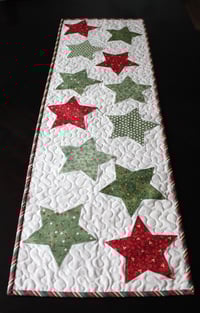 This festive table runner measures 12" x 40" and is a quick project to add to your holiday decor. It is easy to customize this to fit your personal style! This one pattern can be used to make a Christmas table runner, or use blue and red fabrics for a patriotic version.